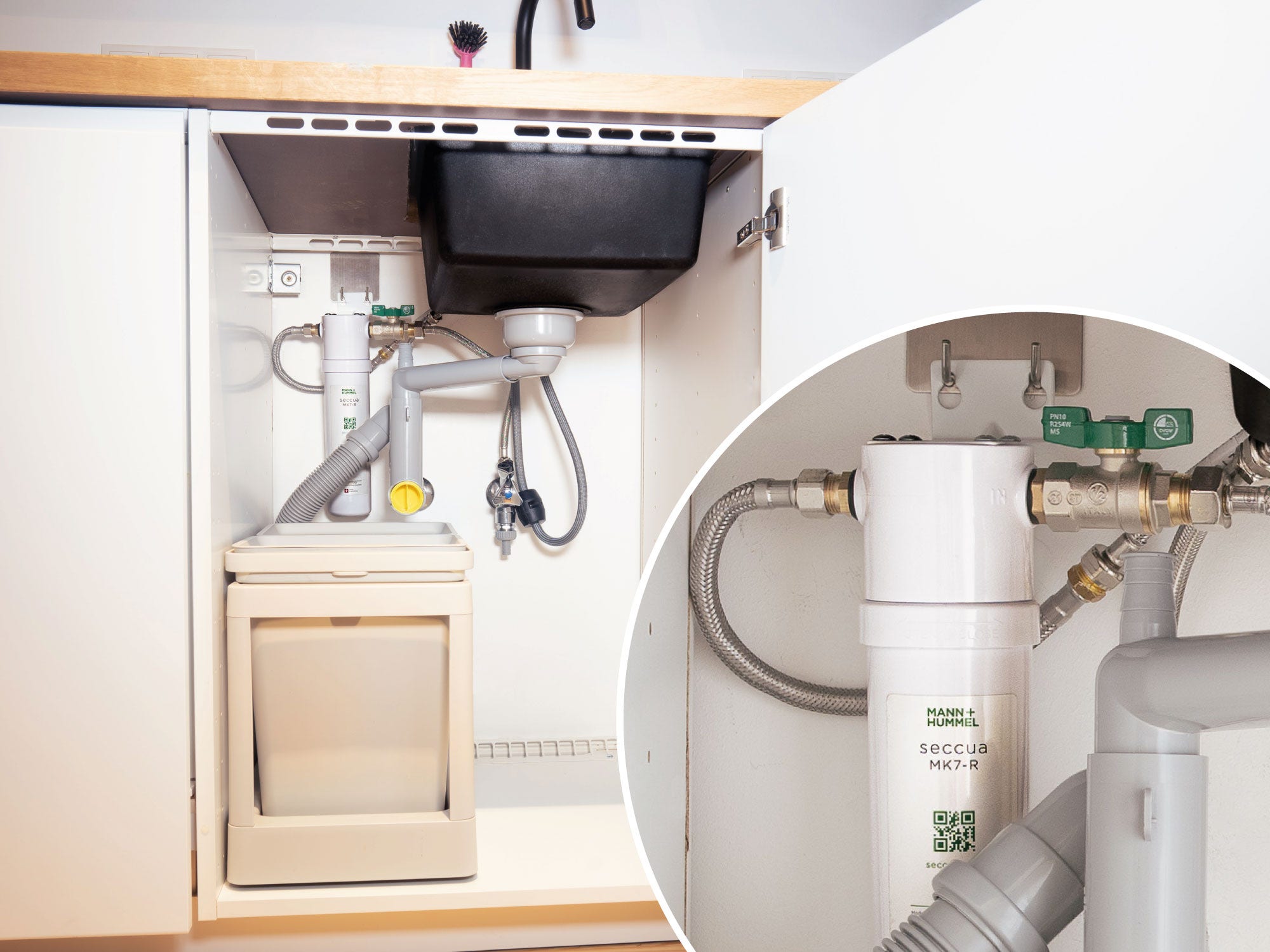 Die Installation des Seccua MK7 unter der Spüle ist einfach und problemlos auch für Ungeübte möglich. Eine schrittweise Installationsanleitung inklusive Grafiken ist hier als Download erhältlich.